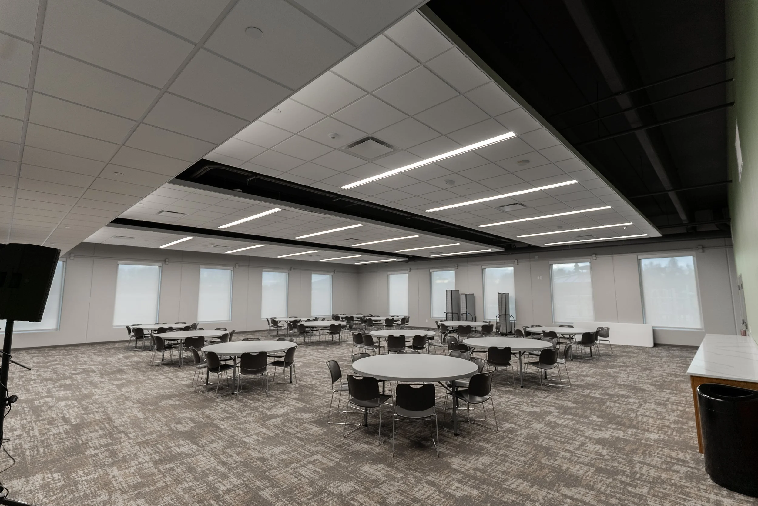 Here is one example of the Event Hall set up as an event venue. If interested in how we can serve your organization through an event, please contact us for additional set up abilities.